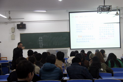 李玉林教授此次讲授的内容是“社会主义改造理论——资本主义工商业改造”,李教授在讲课中系统深入讲述了国家对资本主义工商业改造的目标、方针、方式、过渡形式、步骤、具体过程及意义,阐明了国家对资本主义工商业改造的历史的必然性。