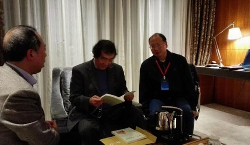 会议期间,甘筱青教授、李宁宁教授与北京大学高等人文研究院院长杜维明先生就中华文明的传播这一课题进行了细致交流。甘筱青教授向杜维明先生介绍了九江学院近年来在儒家经典公理化诠释方面所作的工作,杜维明先生对此深感兴趣,并对九江学院的相关科研成果给予了高度的肯定。