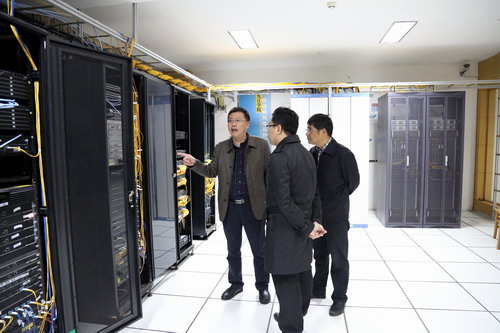 随后,梅龙宝教授陪同柬埔寨王家孔子学院院长谢莫尼勒阁下参观了网络中心机房、数据中心机房、校园一卡通中心机房、平安校园机房,了解学校网络运行和教学系统应用情况,谢莫尼勒院长对永利yl23411集团官网信息化建设给予高度评价。