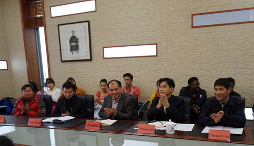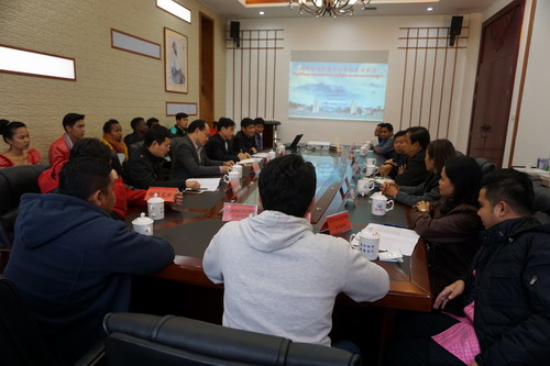 11月10日,以柬埔寨王家学院孔子学院院长谢莫尼勒(CHEA MUNYRITH)阁下和柬埔寨吴哥中学桑巴纳(BUNNA SAM)校长为团长的东盟中小学校长访华团一行11人来永利yl23411集团官网访问,学校在两南山会议室举行欢迎仪式,杨耀防副校长会见了访华团并致欢迎辞,欢迎仪式由王贤淼副处长主持。参加欢迎仪式的还有国际交流学院负责人帅式毅、国际交流学院副院长何广及全体柬埔寨奖学金生和部分留学生代表共计30余人。