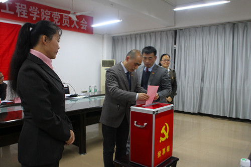 大会酝酿通过了电子工程学院新一届党委委员候选人名单,表决通过了总监票人、监票人名单。根据《中共九江学院电子工程学院党员大会选举办法》,以无记名差额选举的方式,由全体正式党员投票选举产生了新一届中共九江学院电子工程学院委员会委员(以姓氏笔画为序):孙小明、张友木、胡日新、高小英、舒彤。