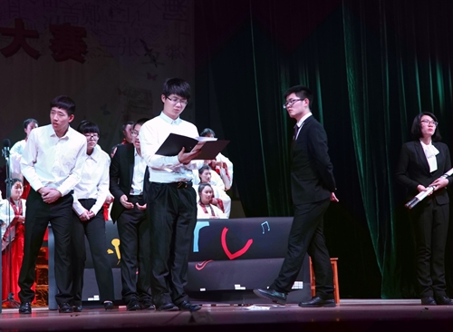 政法学院诵读的《将进酒》,诗篇发端就是两组排比长句,如挟天风海雨向读者迎面扑来。“君不见黄河之水天上来,奔流到海不复回”,以黄河的伟大永恒形出生命的渺小脆弱。这个开端可谓悲感已极,却不堕纤弱,可说是巨人式的感伤,具有惊心动魄的艺术力量,学生们用自己的声音展现了一个桀骜不驯、充满自信、孤高自傲和自信为人的自我价值、渴望用世的积极思想的李白。而文传学院演绎的《蜀道难》,则从李白袭用乐府古题,展开丰富的想象,着力描绘了秦蜀道路上奇丽惊险的山川,并从中透露了对社会的某些忧虑与关切,表现了作者强烈的忧国忧民的情怀。