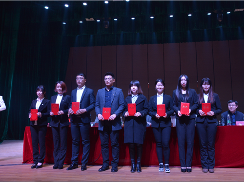 与会领导为经管学院、会计学院、外语学院、政法学院、基础医学院、康馨专项等6支志愿服务队颁发了优秀青年志愿者服务队锦旗;为外语学院学生会、土建学院学生会、旅游学院学生会、经管学院学生会、艺术学院学生会、机材学院学生会、九江学院学生会(八里湖校区)颁发了“优秀基层学生分会”锦旗;为于占炅、占绍雄、刘思源、吴夏碧晨、冯永波、蒋永威、赵鑫、周影、施晨、叶莉梅等10名学生干部颁发了“十佳学生会干部”荣誉证书;为方舟生态协会、跆拳道协会、蝶湖文学社、南山国学社、大学生记者团、交谊舞协会、摄影协会、绿江环保协会、濂溪诗社、DV影视协会等10个学生社团颁发“十佳社团”锦旗,就新任校团委干部,学生会干部代表,学生社团干部代表颁发团学干部聘书。