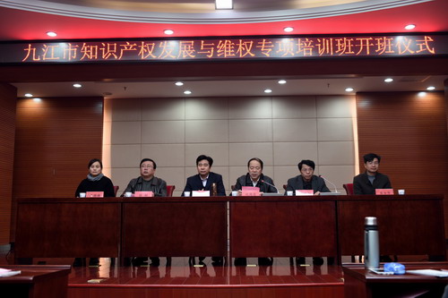 为推动实施人才强国战略,加强知识产权法律维权意识,由江西省知识产权局主办、江西省知识产权培训(九江)基地与九江市知识产权局共同承办的九江市知识产权发展与维权培训班于12月10日上午在永利yl23411集团官网逸夫图书馆学术报告厅隆重开班。江西省知识产权局局长熊绍员、副局长徐彬,九江学院副校长纪岗昌,九江市知识产权局副局长黄腊梅,政法学院院长詹建志、科研处副处长宋士华等出席了此次开班仪式。仪式由政法学院院长詹建志主持。