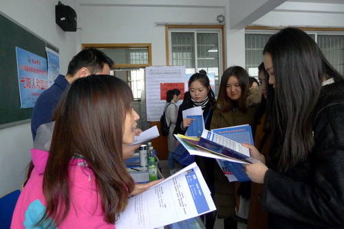 招聘会上,浙江湖州吴兴区卫计局、人事局组织了17家医院和卫生机构前来招聘,带来了100多个就业岗位,达到了预期效果。同学们一个个充满自信的拿着个人简历,选择自己适合的用人单位,他(她)们着装整齐、举止大方,充分展示了九江学院学子良好的精神风貌,个个都争取把自己最优秀的一面呈现给各用人单位;各用人单位也争先恐后以展板、解说等形式让同学们了解他们,以便能优先选择他们。此次“双选会”,得到了学校大力支持,校领导亲临会场指导,并与多家用人单位和部分应聘毕业生进行了交流。