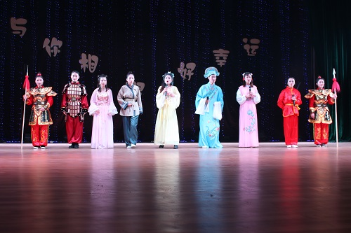 晚会在13级学生自己拍摄的短片中拉开帷幕,短片里放映的是13级播音专业学生们为此场活动而忙前忙后的准备过程,排练中的欢声笑语,折射出“与你相遇好幸运”的晚会主题。而后,一只憨态可掬的熊本熊打开了广播,播音班各位优秀主持人的毕业晚会正式开始了。