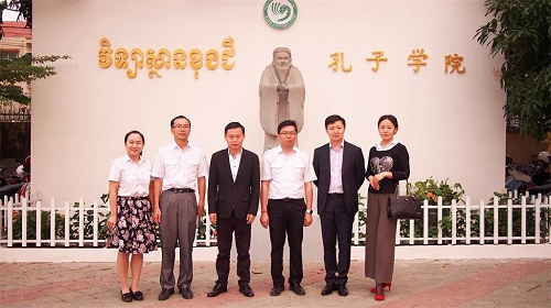 会谈结束后,程主任和王主任参观了柬埔寨王家研究院孔子学院,并合影留念。(唐宇敏)
