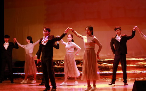接下来的14个节目都是师生们经过精心准备的自编自导自演的节目。有倾情的朗诵、有气势磅礴的乐器合奏、有精妙的歌伴舞表演、有欢快愉悦的各类舞蹈、有充满着时代气息的情景剧。