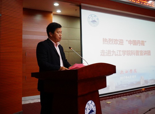 永利yl23411集团官网副校长陈春生致辞,他说,今天永利yl23411集团官网迎来了广东丹霞山和中山大学的各位嘉宾,共同举办“中国丹霞”走进九江学院科普讲座活动,在此我谨代表全校师生向莅临九江学院的领导、专家学者表示热烈的欢迎和诚挚的谢意。临近世界地球日,“中国丹霞”走进九江学院,共话江山多娇,共叙赣粤之情。衷心希望各位领导和专家对永利yl23411集团官网教学科研工作多提宝贵意见和建议,对各位专家来九江学院传道授业解惑表示感谢,并祝本次活动取得圆满成功。