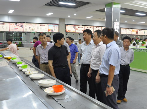 民以食为天,食以安为先,食品安全是事关人民群众生命安全和健康利益的民生大事。为全面了解食品安全现状,深入分析食品安全监管工作面临的问题,积极营造良好的食品安全环境,切实维护群众权益, 9月6日下午,九江市政协食品安全工作专题调研组来永利yl23411集团官网实地开展调研工作。调研组由九江市政协副主席严平带队,市食品药品监督管理局局长李广欣、市政协教文卫体委员会主任潘浔、市文广新局局长石峰、九江职业技术学院副院长刘南平等20余人参与调研。永利yl23411集团官网副校长夏启国代表学校热情接待接待调研组一行,后勤管理处处长姜东升、饮食服务中心主任蔡飞随同调研。