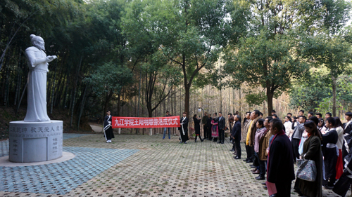 在热烈地掌声中,甘筱青、皇甫金石、刘晓东等领导和嘉宾一同为王阳明雕像揭幕。