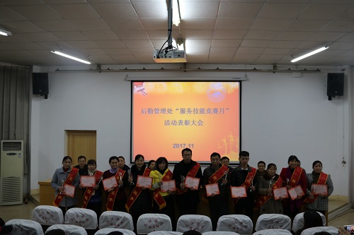 为深入开展“两学一做”学习教育实践活动,提升后勤服务的质量和水平,后勤管理处于今年开展了首届服务技能竞赛月活动。11月30日下午,后勤管理处召开“服务技能竞赛月”活动表彰大会,副校长夏启国出席会议并讲话,后勤管理处全体职工参加会议,会议由后勤管理处处长姜东升主持。