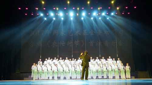 永利yl23411集团官网2017年国家艺术基金小型舞台艺术资助项目合唱《农忙时节》12月8日在九江市文化艺术中心剧院首演。