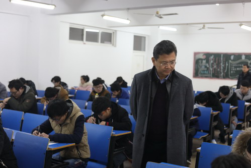 1月8日上午,校长刘晓东、副校长陈春生在教务处和电子学院负责人的陪同下,在竞知楼巡查了期末考试和环境卫生工作。