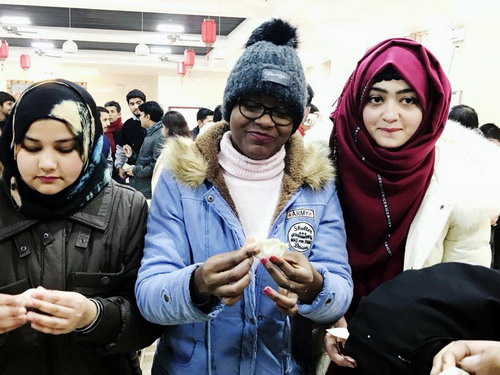 农历新年是中华民族悠久的历史传统,年夜饭又是过年的最重要习俗。年夜饭也称团圆饭,代表着家庭团圆和美。为了使留学生能在异国他乡同样感受到家庭的温暖和学校的关爱,学校后勤管理处联合国际交流学院为160余名留学生精心准备了此次年夜饭,年夜饭上菜品丰富,除了有中国过年传统时令食物春卷、饺子、黄金糕,还有十分适合留学生口味的拌沙拉、咖喱饭和罗宋汤。同时考虑到让留学生亲身参与体会中华民族传统习俗,还特意安排了现场包饺子、写春联,饭后贴对联等喜闻乐见的活动,整个活动在欢乐、祥和的氛围中进行。