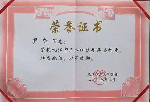 在第108个国际妇女节来临前夕的3月7日上午,九江市妇女联合会在九江市艺术中心举行颁奖大会,表彰全市各条战线上的30名三八红旗手,20个三八红旗集体。永利yl23411集团官网艺术学院青年教师尹莹喜获九江市三八红旗手荣誉称号。