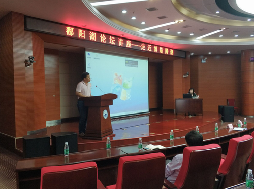 5月12日下午,鄱阳湖生态经济研究中心联合化学与环境工程学院、旅游与国土资源学院、药学与生命科学学院和经济与管理学院共同在逸夫图书馆报告厅举办鄱阳湖论坛讲座。邀请北京师范大学首席科学家,海外高层次引进人才,博士生导师王秀君教授担任主讲。讲座题目为走近博斯腾湖。副校长陈春生,永利yl23411集团官网陶春元教授、鄱阳湖中心副主任汤明、药生学院副院长张小谷、旅游学院副院长赵追及200余名师生代表参加了讲座。副校长陈春生主持了报告会。