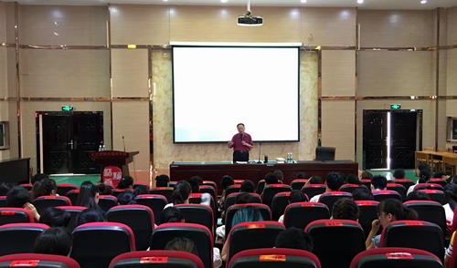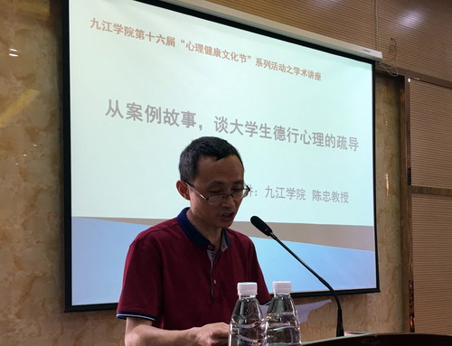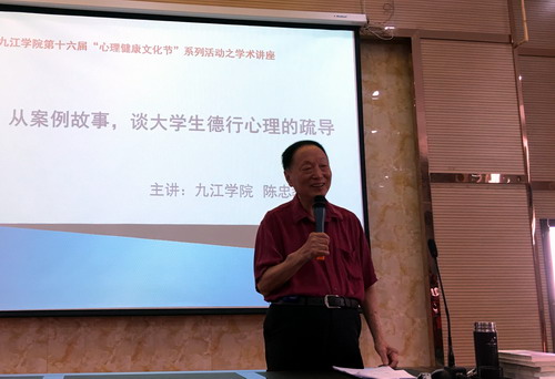 为加强大学生思想政治工作,普及大学生心理健康知识,帮助大学生健康成长,丰富永利yl23411集团官网第十六届“心理健康文化节”活动内容,5月17日下午,党委宣传部、学生处、校团委邀请永利yl23411集团官网知名教授陈忠老师为师生作题为《从案例故事,谈大学生德行心理的疏导》学术讲座。来自全校500余名师生齐聚香远楼三楼报告厅,共同聆听了陈教授的精彩报告,讲座由学生处项忠平副处长主持。
