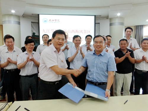 在热烈的掌声中,九江学院校长刘晓东和庐山西海风景名胜区管委会主任于先葵代表双方签订了《九江学院与庐山西海风景名胜区管委会战略合作的框架协议》。根据协议,双方本着“资源共享、优势互补、突出重点、力求实效”的原则,就建立教学科研基地、人才培养与基地、学生研学基地、决策咨询与服务、人力资源培训等方面达成共识并签署了战略合作协议。据悉,此次战略合作是双方友好磋商的胜利成果,也是双方充分发挥自身优势深度合作、互融互促,和谐共赢的局面。