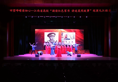 一封封红色家书,召唤着尘封的记忆;一个个英烈故事,引领着奋进的方向。在中国共产党成立97周年之际,7月1日下午,由江西省委教育工委、江西省教育厅主办,九江学院承办的“回望峥嵘读初心——江西高校‘诵读红色家书讲述英烈故事’巡演(九江站)”在永利yl23411集团官网澎湃上演。