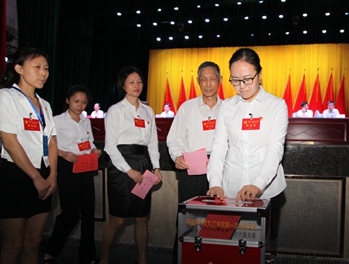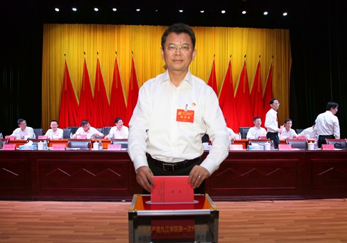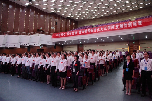 在雄壮的《国际歌》乐曲中,中共九江学院第一次代表大会胜利闭幕。