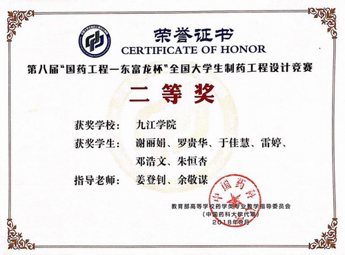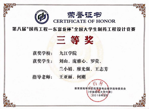 该项竞赛是目前全国制药工程专业影响力最大的设计类竞赛。本届大赛的参赛题目是“口服固体制剂车间设计”,全国共计133所高校279支队伍报名参赛。大赛采取队伍限制原则,每个学校最多提交三份有效作品,并设立了全国一等奖12项、二等奖72项、三等奖84项。永利yl23411集团官网药生学院连续第二年参赛,并取得佳绩后,获全国二等奖、三等奖各一项。