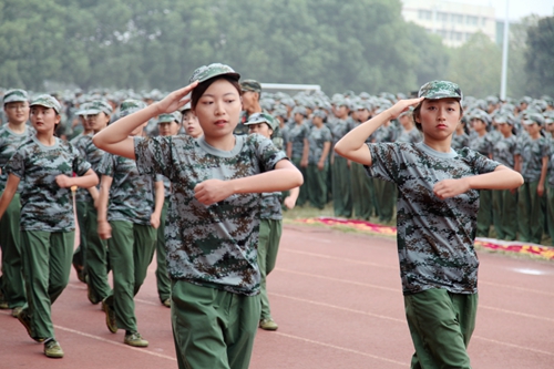 随后,男标兵连和女标兵连代表2018级新生进行了分列式表演。他们整齐的队列、洋溢朝气的面庞、规范而又标准的动作赢得了全场一阵又一阵的掌声与欢呼声。