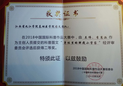 9月16日,2018中国国际科普作品大赛在中国科学技术馆圆满落下帷幕。由永利yl23411集团官网基础医学院吴伟老师和艺术学院李慧涵老师合作创作的《身体里的胖瘦小管家》喜获本次大赛科普图文二等奖。