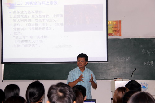 刘校长还结合钱学森回国的故事和自身长期在核工业行业从事教学科研的工作经历,深刻阐述了自己对“两弹一星”精神的理解和感悟。他指出,“热爱祖国、无私奉献,自力更生、艰苦奋斗,大力协同、勇于登攀”的“两弹一星”精神,其核心内容就是要“热爱祖国、无私奉献”。同时,结合中国近现代和当代历史发展进程,深刻阐述了学好历史课程的现实意义。他强调,学习历史要温故而知新,回顾中国从近代贫穷落后到新中国成立再到改革开放40周年繁荣富强的历史巨变,充分证明了只有中国共产党才能救中国、才能发展中国,并取得了举世瞩目的伟大成就;青年大学生要自觉坚定理想信念,增强“四个自信”,大力传承和弘扬“两弹一星”精神以及改革创新的时代精神,牢固树立报效国家、奉献社会的人生目标,切实担负起实现中华民族伟大复兴“中国梦”的历史使命。