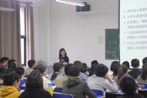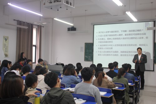 周江老师通过理论和习题结合的方式讲授了证据存在哪些分类,课堂师生互动频繁。课后陈春生副校长对周江老师的授课表示肯定,表扬其用“法言法语讲法事”,是青年教师的代表;同时也对周江老师的课堂提出建议:可以讲解更贴近社会现实具有法律深度的案例。