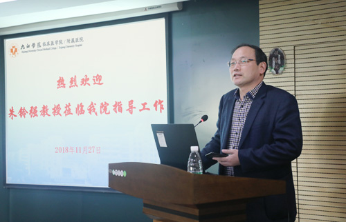 临床医学院/附属医院殷小平副院长代表全院师生对朱铃强教授来院进行学术讲座表示感谢。他说,医院将积极响应学校号召,进一步加强协作,加大科研支持力度,同时期待大家有更多、更新的科研思路和方法,多出成绩,为医院和学校的发展作出贡献。