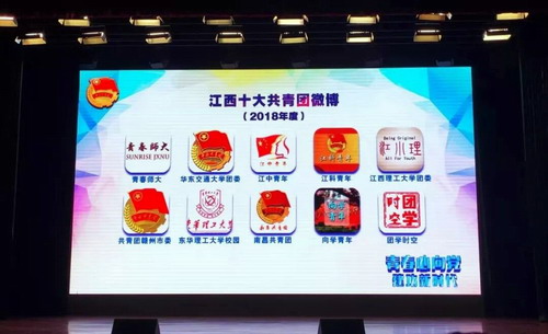 近日,由共青团江西省委主办的“青春心向党 建功新时代”2019年全省共青团新媒体颁奖典礼在全国青少年井冈山革命传统教育基地举行,表彰对象涵盖全省各设区市、省直各单位、各高校团委。校团委官方微博“@向学青年”以较高的阅读量、传播力、贡献力脱颖而出,荣获2018年度“江西十大共青团微博”称号。