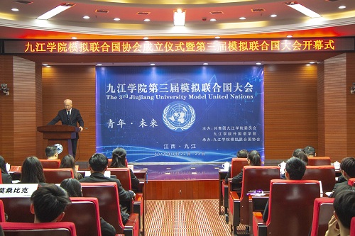 3月22日上午,九江学院模拟联合国协会成立暨第三届模拟联合国大会开幕式在逸夫报告厅举行。校党委副书记魏立平、中国模拟联合国常务理事、资深外交官华黎明大使出席开幕式,本次模联大会以“青年·未来”为主题,有来自华中科技大学、武汉大学、华东交通大学、长沙学院和永利yl23411集团官网的50名代表参加,学生处、团委、外国语学院负责同志参加了大会。开幕式由校团委副书记任丹阳主持。