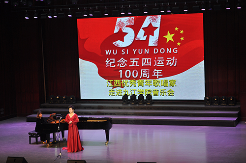 3月29日晚七点半,纪念五四运动100周年江西优秀青年歌唱家走进九江学院音乐会在艺术学院音乐厅举行。副校长查振华、江西文化演艺发展集团有限公司副总经理柯亨龙、九江市政法委副书记聂太贵,以及社会各界音乐爱好者、艺术学院师生等近500人观看了音乐会。