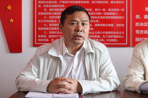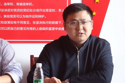 官莲乡党委副书记、东山村党支部书记、驻村第一书记谭翊泉在会上汇报了学习习近平在重庆考察并主持召开“解决‘两不愁三保障’突出问题座谈会”上讲话精神的体会,汇报了学习省委刘奇书记在“中央脱贫攻坚专项巡视反馈意见整改工作动员会”上讲话精神的体会。