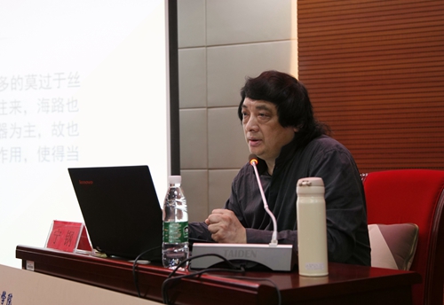 讲座中,宁钢围绕陶瓷之路、中国风设计,西方文化艺术影响下的中国当代艺术,文化自信的实质与践行以及陶瓷艺术对中国传统文化的推动等四个方面进行深入阐述,结合党的十九大报告、习近平在庆祝中国共产党成立95周年大会的讲话以及在中国文联十大、中国作协九大开幕式上的讲话中关于文化自信的系统论述,通过大量史实和文物、艺术图片的展示,强调中国陶瓷艺术在增强文化自信上的重要意义。