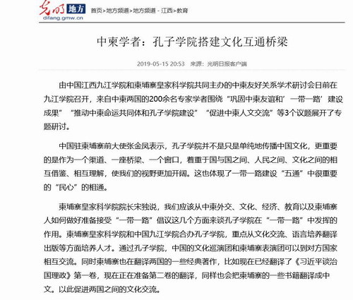 永利yl23411集团官网与柬埔寨皇家科学院共同主办的首届中柬友好关系学术研讨会于5月12日至14日胜利召开。人民网、中国青年网、光明网、东方网、江西日报等30多家中央及省市级新闻单位(包括境外媒体)集中转载报道此次大会,永利yl23411集团官网在孔子学院办学中的特色亮点被广泛关注,学校知名度大幅提高,社会影响力显著增强。