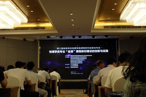 8月3日进行大会专题报告, 共分四个主题:站在“立德树人”新高度,建设“两性一度”的物理专业“金课”; 推动信息技术与物理专业课程的深度融合,打造符合“金课”建设背景的新型课程教材; 新时代背景下物理专业“金课”、教材、教学方法的融合创新模式;与一流专业建设结合的“金课”建设。