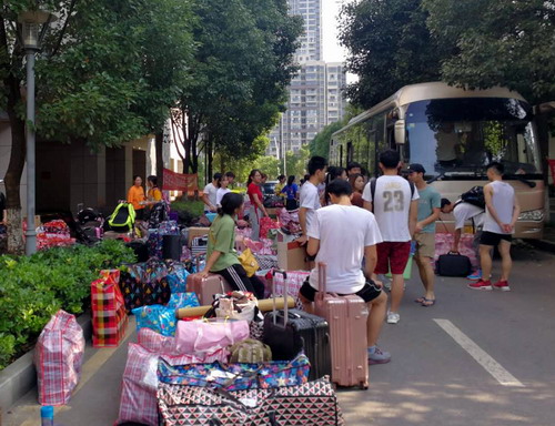 近日,根据学校教育资源整合工作总体安排,体育学院、政法学院师生陆续从八里湖校区搬迁至主校区。为了确保搬迁工作顺利完成,学校党委、行政高度重视,赵伟书记、刘晓东校长亲自过问关注,校党委副书记魏立平多次电话指导学生搬迁工作。夏启国副校长召集国资处、学生处、八里湖校区等相关部门和二级学院专门开会研究部署,制定了搬迁方案,为学生发放编织袋,安排接送车辆。
