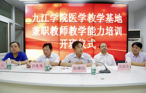 为进一步保证医学教育质量,提高临床兼职教师教学能力,促进临床医学教育同质化,9月10日下午,副校长杨耀防在医学部主任许礼生等陪同下,赴九江市第一人民医院参加临床兼职教师教学能力提升培训启动仪式。九江市第一人民医院党委书记吴崇杰及医院各科室主任、受聘兼职临床教师参加会议,会议由市一医院副院长罗云主持。