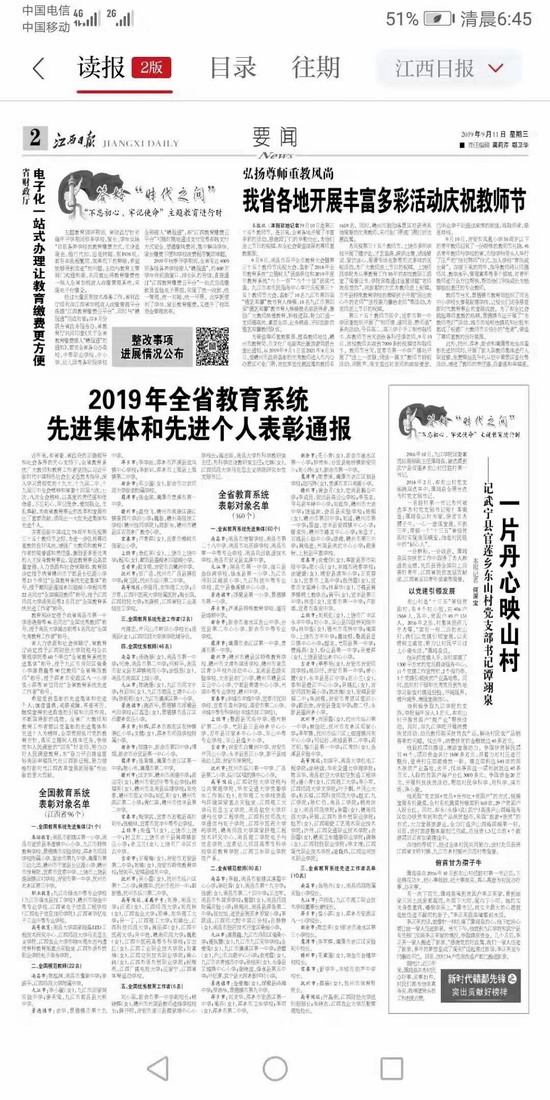 (江西日报2019年9月11日发布http://m.jxxw-com-cn/v5/index.php?c=App_News_v5&m=show_paper&contentid=3928875&paperId=2&uid=0&uuid=00000000-6e25-eb7d-ac86-1d57143645e9)