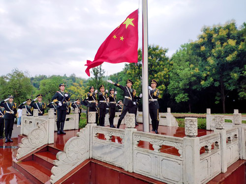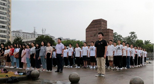 9月2日早7时,九江学院1000余名师生代表冒雨在西大门从广场整齐列队,共同参与“青春告白自祖国”开学第一旗活动,共同为祖国70周年华诞献礼。列队,出旗。国旗护卫队的队员们迈着整齐的步伐,护送国旗入场;红旗飘扬、赞歌嘹亮,在场全体师生共同用最真挚的情感唱响国歌,向伟大祖国真情告白。