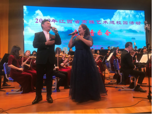 为全面贯彻习近平新时代中国特色社会主义思想和全国教育大会的讲话精神,11月11日至15日,根据省教育厅安排,永利yl23411集团官网交响乐团90余名师生走进了江西服装学院、江西制造职业技术学院、南昌师范学院等三所高校,南昌三中、江西师范大学附属中学滨江分校等两所中学进行巡演音乐会。副校长査振华到场和所在学校领导、师生一同观看。