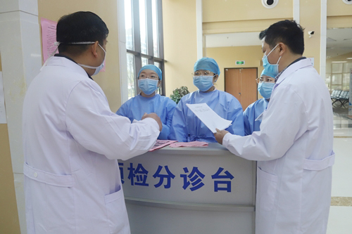 在附属医院党委书记张南华、纪委书记刘英明的陪同下,刘校长前往医院门、急诊体温检测点等处,检查新型冠状病毒肺炎疫情防控工作,了解疫情防控措施、医疗物资储备、应急处置等工作落实情况。他指出,近日就诊人数增加,人员往来密集、流动频繁,要更加密切关注重点人群;减少出入口,增加体温检测人力,并对进出医院的人员做好登记,做到第一时间甄别发热病人。