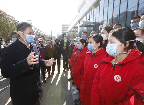 市委书记林彬杨在出征前一天作出重要批示:要求大家以坚定的信心、顽强的意志、精湛的医技、崇高的医德打赢这一战。市委副书记熊永强在出征仪式上,希望大家牢记习近平总书记的殷切嘱托,把人民群众生命安全和身体健康放在第一位,全力以赴投入到抗击疫情和救治患者工作之中。市政府副市长李军代表市政府向即将应召出征的附属医院医疗队员们表达敬意!