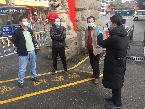 2月14日上午,刘晓东校长来到学校南门疫情防控值勤岗,看望坚守在岗位的保卫处和校医院的工作人员,并检查指导门岗防控工作。