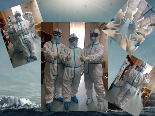 杜雪英老师是一位有过多年工作经验的院感专家,在医疗组她主要负责院感防控培训工作。穿戴防护服是一项新的、极为重要的个人安全防护培训,要求每一位医护人员在使用防护服时,必须从穿到脱,每一处细节,每一个步骤都不能出错,一旦出现错误,将面临被感染风险。1月29日,为了给医护人员彻底做好个人防护,杜雪英老师从晚上8点一直工作到凌晨4:30,确保每一个人都能够掌握到位。杜老师说:“我们是带着使命来的,有压力,也很辛苦,但有大家的支持,我们有信心!”