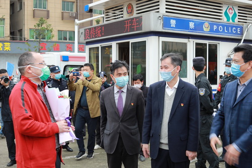 在领导和群众们的挥手致意下,警用摩托为他们护航前往休整地进行为期14天的休整和医学隔离观察,柴桑区主干道两旁交通警察肃立敬礼,群众们挥舞着手中的国旗目送着英雄们远去。受赵伟书记和刘晓东校长的委托,副校长杨耀防全程护送他们抵达目的地。