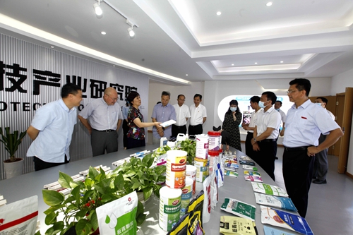 最后,朱希主任一行来到博正生物科技产业研究院,参观了研究院的产品展示厅、演示厅和研究室等。他对九江学院在与地方、企业加强产学研合作方面作出的有益探索表示肯定,他强调,校企合作联合开展科学研究将极大促进教师教学科研水平的提高,促进学校教育教学水平迈上新台阶。
