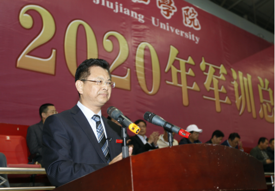 10月15日下午,九江学院2020年军训总结表彰大会在北区田径馆隆重举行。校领导赵伟、刘晓东、魏立平、纪岗昌、王万山、陈春生、杨耀防、夏启国、查振华、陈小林,全体承训教官、各二级学院党政负责人、有关职能部门负责人、全体辅导员、新生班主任及7000余名2020级新生参加了表彰大会。大会由副校长陈小林主持。